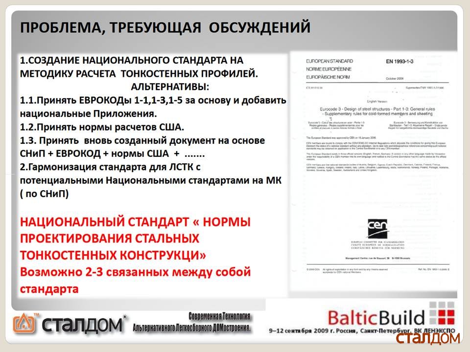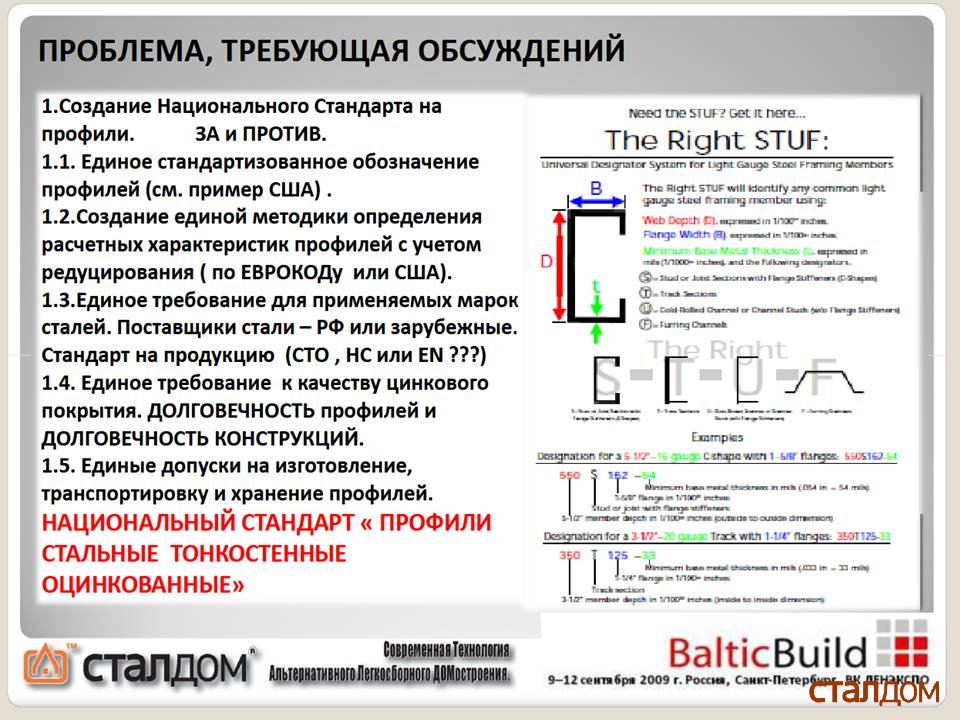 Пpeдложения СТАЛДОМ по дальнейшему совeршенствованию норм для проектирования ЛСТК (из доклада) см. ниже.