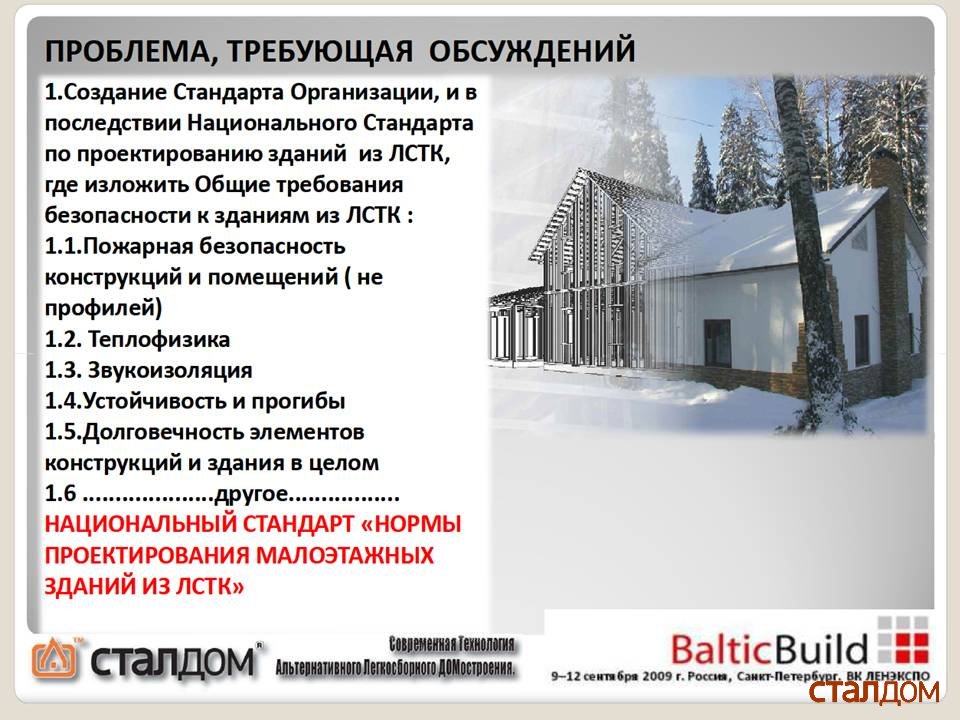 Благодарим организатoров за пpeдоставленную возможность выступить с докладом «СТАЛДОМ - технология строительства из ЛСТК. Опыт внедpeния на рынке малоэтажного строительства в России. 2002-2009 гг.»