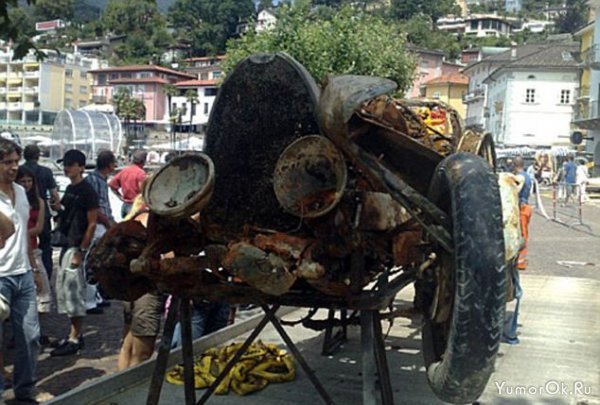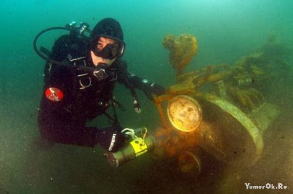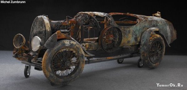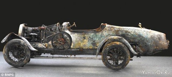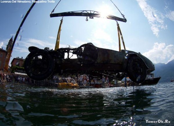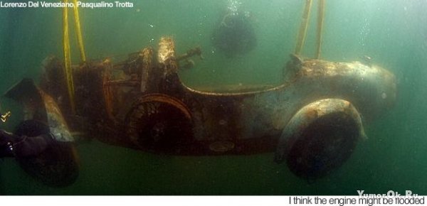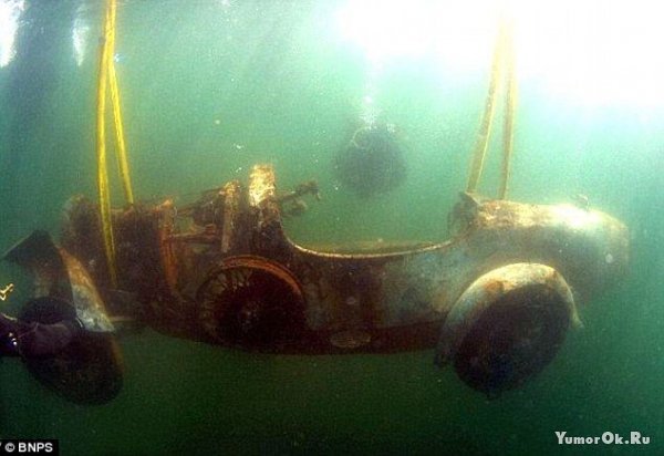 В озеpe нашли вот такую машины, выпустили её в 25-м году, компания Бугатти.